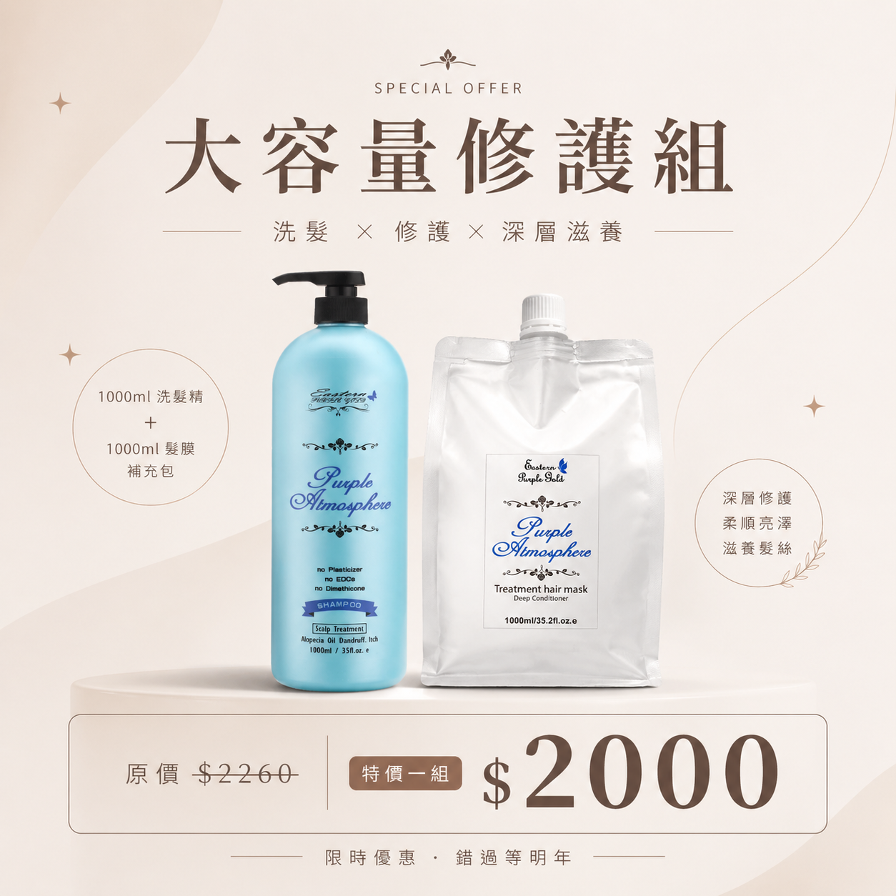 1000ml洗髮精×1+1000ml髮膜×1